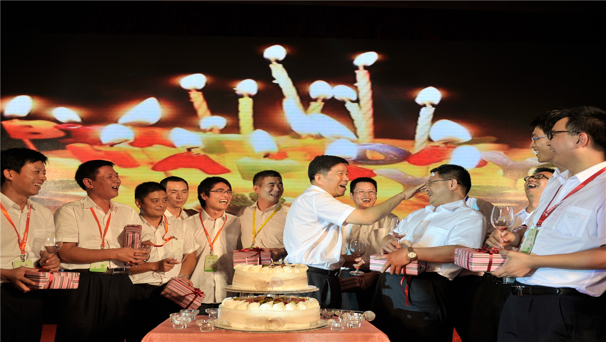 2013年7月,在武漢召開的“尊龍凱時人生就是贏集團2013年工程管理現(xiàn)場會”上,樓永良董事長為員工慶祝生日?!瘕垊P時人生就是贏六建