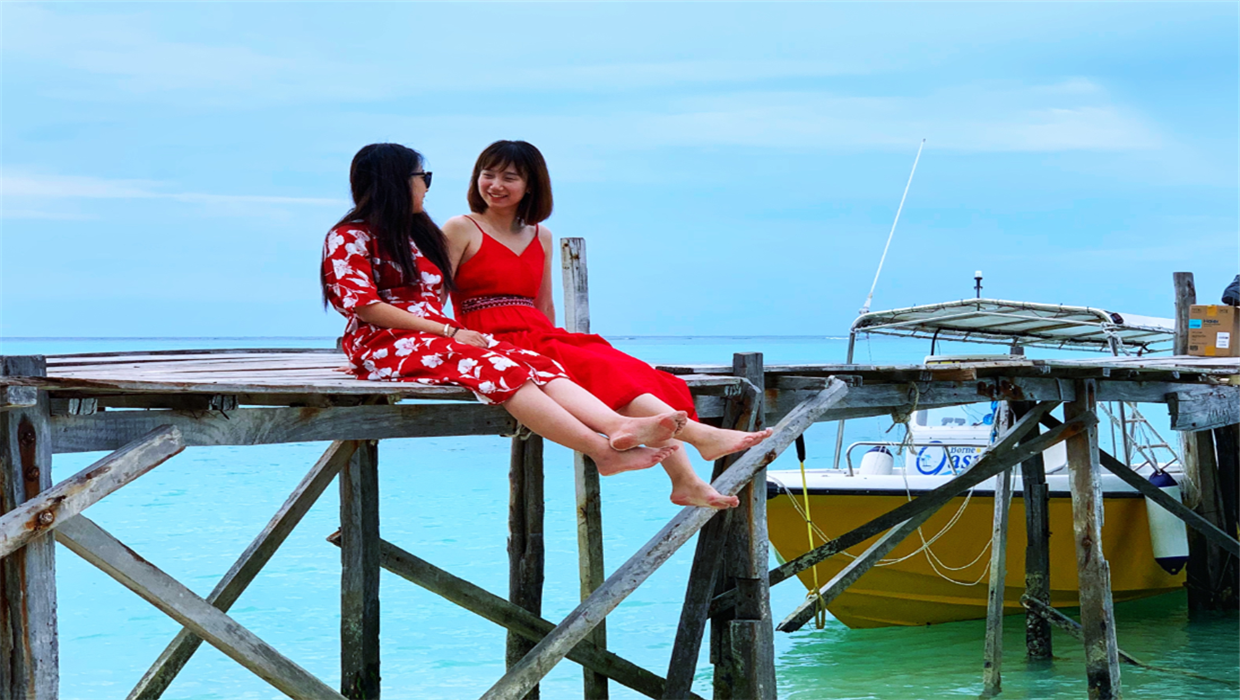2019年暑期天津公司集體去馬來西亞沙巴年度旅游,兩位公司市場經(jīng)營處的小姐姐正坐在碼頭悠閑地聊天。