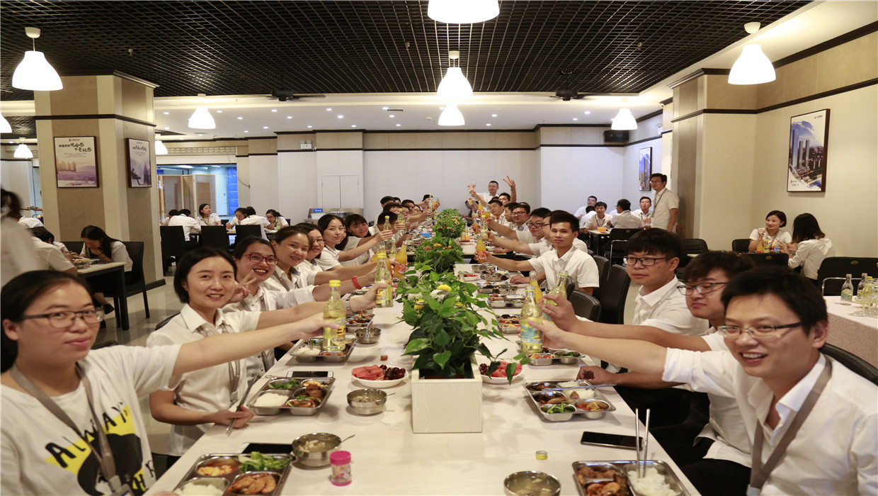2018年9月17日尊龍凱時人生就是贏六建新職工食堂開張大吉,全體員工舉杯同慶