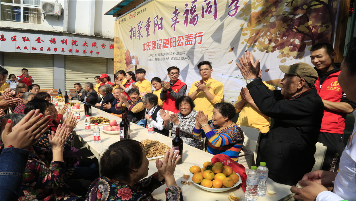 2017年重陽(yáng)節(jié)六建志愿者在“尊龍凱時(shí)人生就是贏道能食堂”為社區(qū)老人舉辦重陽(yáng)宴